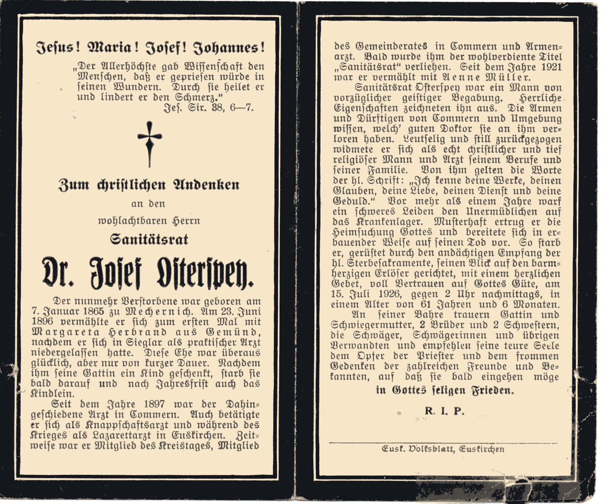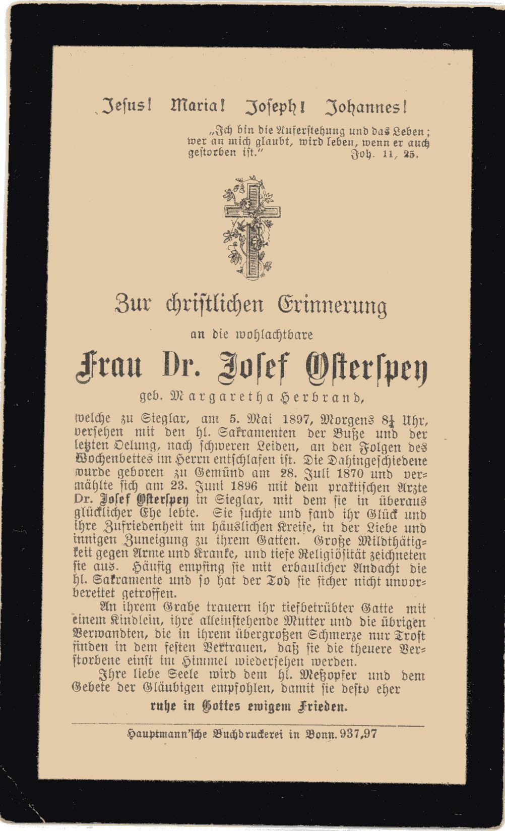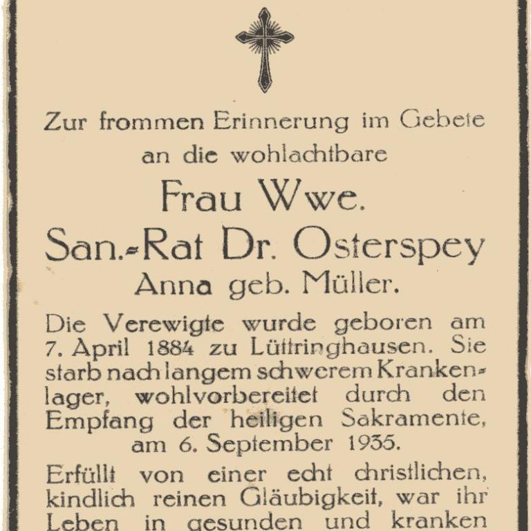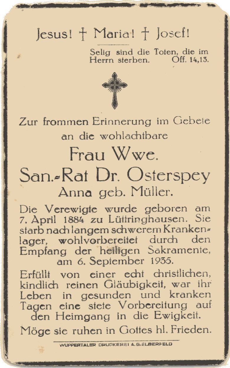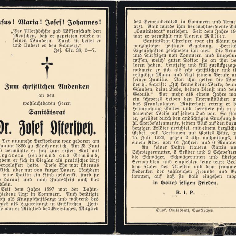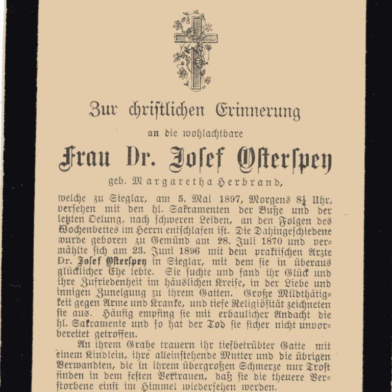 Der älteste der Osterspey Geschwister wurde am 7. Januar 1865 in Mechernich geboren