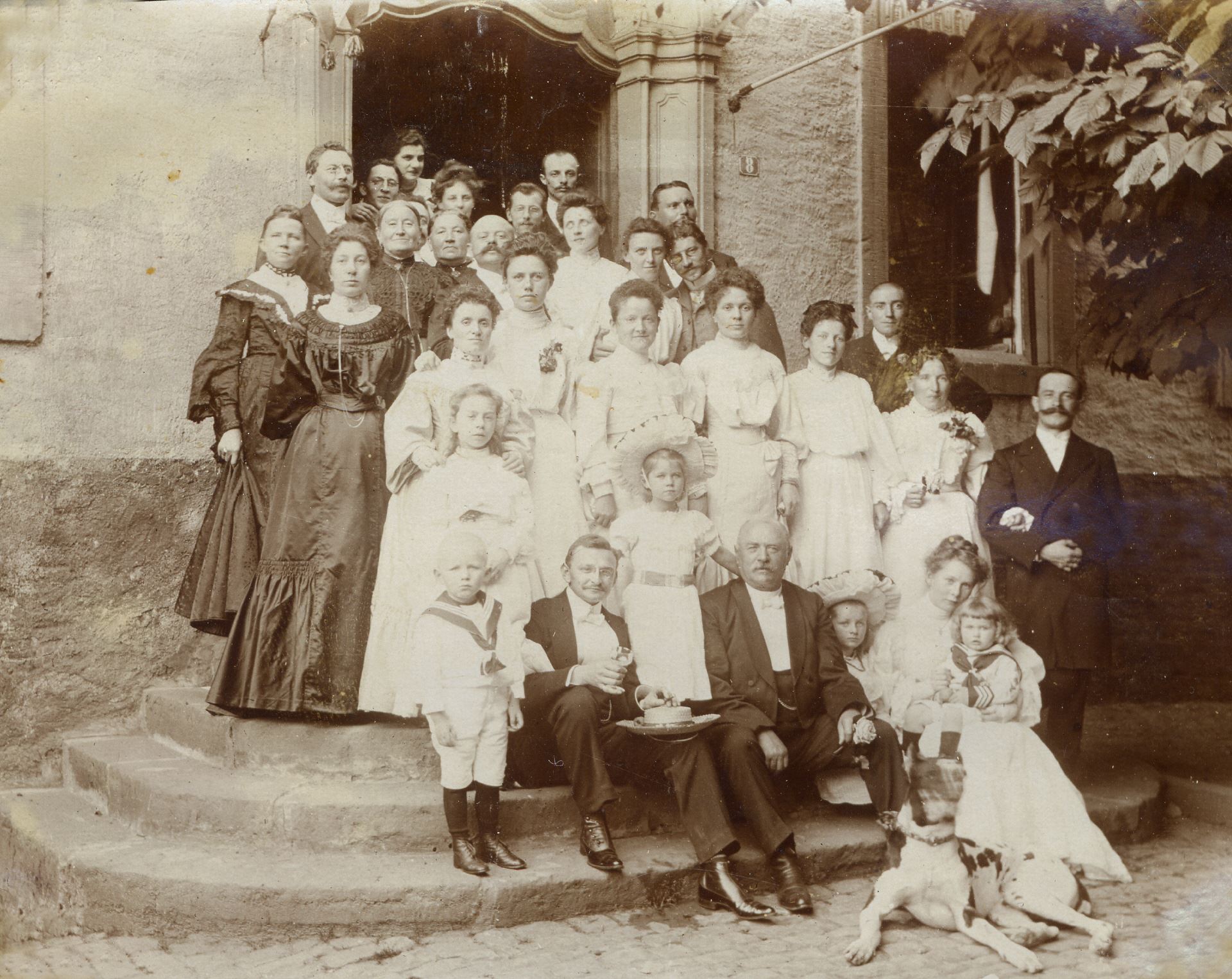 Hochzeit am 9. Juli 1904 - das Brautpaar im oberen Drittel des Bildes rechts